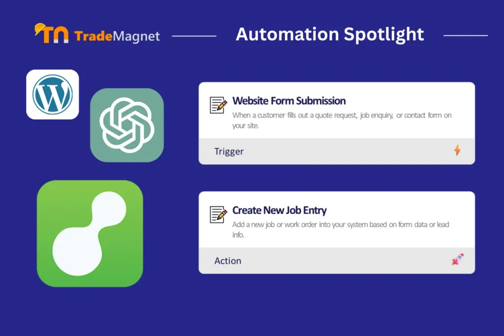 We took a standard form on a tradie website (in this case for a plumbing client), and built an automation that does everything from client matching to image analysis, and spits out a full job in ServiceM8 — including a technician-ready job description and attachments.